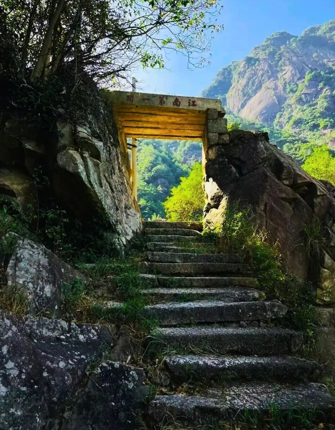 沿途经江南第一关,1400多级花岗石石阶沿峭壁而上,地势险峻,“徽杭锁钥” 的摩崖石刻尽显沧桑;过逍遥谷,溪水潺潺、古木参天,木栈道与竹林相映,是天然的 “徒步空调房”;登蓝天凹,海拔1050米的制高点,可俯瞰峡谷云海,日出日落时,云雾翻涌如仙境,随手一拍都是大片。
