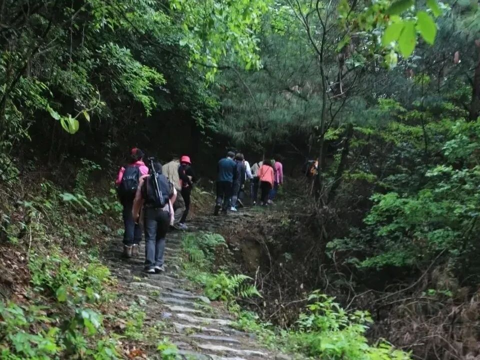古道全程林荫密布、郁郁葱葱,青石板与林间小径交错,沿途可途经金岭洞、龙潭飞瀑等景观,其中金岭洞是1968年人工开凿而成,如今仍保存完好,是红色研学与徒步赏景的绝佳结合点。