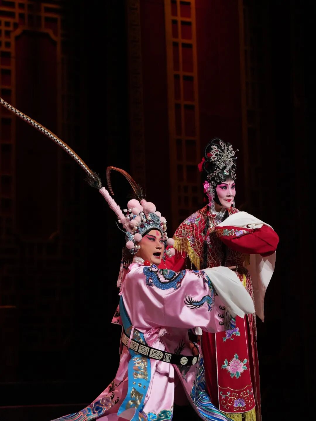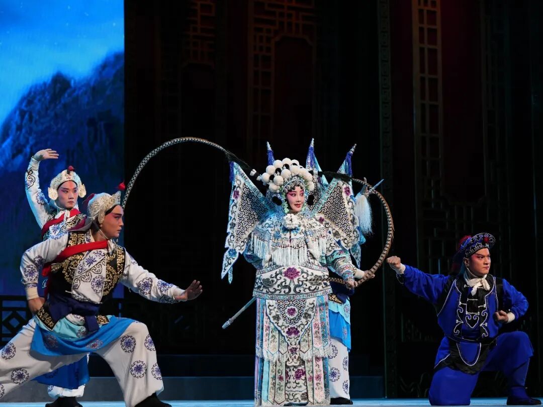 本场演出以开场舞《戏韵芬芳》唯美启幕,用灵动舞姿勾勒戏曲身段之美,将传统程式与现代舞蹈相融,瞬间营造出浓郁的梨园氛围。随后,南北剧种轮番登场、交相辉映:既有昆曲《桃花扇》的水磨雅韵、黄梅戏《天仙配》的乡音甜润,尽显江南戏曲的婉转灵动;也有豫剧《穆桂英挂帅》的铿锵豪迈、京剧《智取威虎山》的气贯长虹,尽显北方剧种的磅礴气势;更有祁剧《杨门女将·探谷》的武戏张力、徽剧《小宴》的翎子绝技,展现传统戏曲的程式之美;台州乱弹《做媒》的市井烟火、楚剧《万里茶道·提壶邀月》的诗意新编、越剧《打金枝》的宫闱纠葛,则让整台晚会层次丰富、韵味悠长。
