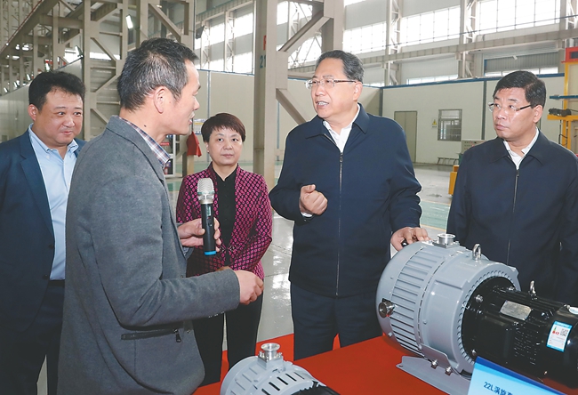 11月5日,省委书记李锦斌深入安徽应流机电股份有限公司,详细了解企业核心技术研发和生产销售等情况。记者 徐国康 摄