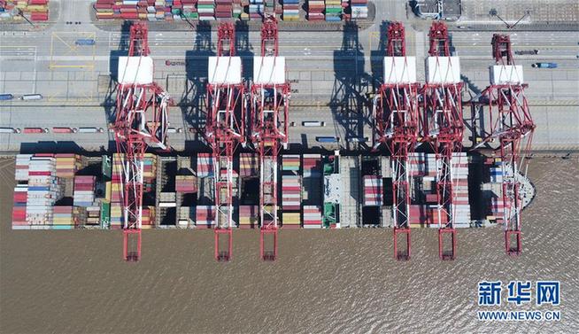 这是3月18日拍摄的上海洋山港集装箱码头(无人机照片)。新华社记者 丁汀 摄
