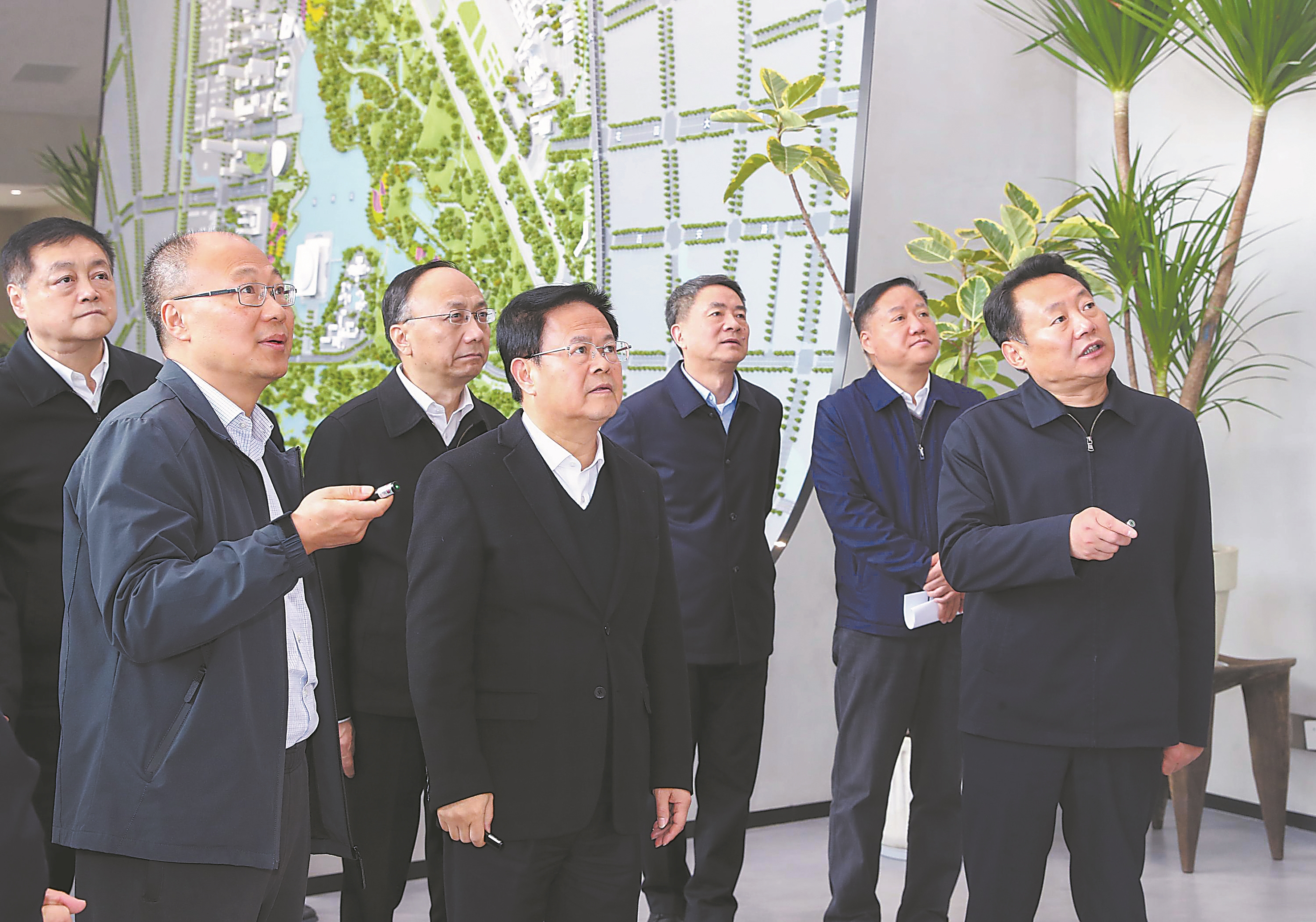 合肥骆岗中央公园是改造骆岗机场旧址、举办第十四届中国国际园林博览会、建成高品位城市公园的重大项目。郑栅洁来到项目建设现场,登高远眺建设场景,结合展板、数字沙盘听取工作汇报,全面了解项目总体规划、建设进展等情况。“容积率多少?”“与全国同类公园比有什么特点?”“配套设施怎么样?”郑栅洁实地看、认真听、详细问,叮嘱当地和有关部门要科学合理规划,既考虑整体视觉效果,又考虑个体微观感受,提升群众游园体验;要统筹蓝绿空间,联通上下游水系,做好增绿补绿文章;要认真做好园博会筹备工作,加快推进跑道、航站楼等旧址改造,进一步挖掘特色亮点,办一届体现国际水准、展现独特魅力的精彩盛会。