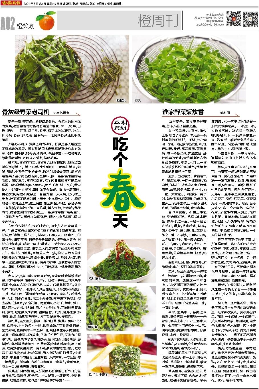 有一天早晨,去菜市,摊位上忽然堆了马兰头,乍见那一根根紫茵茵的嫩杆,一颗心为之悸动。捻起一棵,放拇指食指间,轻轻掐断,凑近,深深闻嗅,菊香袅袅。每一年皆类似,如遇故旧。那种殊异的菊香,大约可刺激人体分泌多巴胺,不然,人何以一闻见这淡淡浅浅的药香气,情绪便无端地昂扬起来了呢?