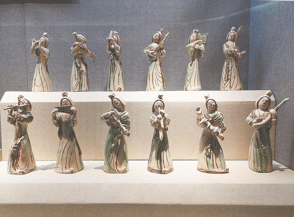 界首市博物馆藏仿敦煌“十二乐俑”彩陶。 记者 张理想 摄