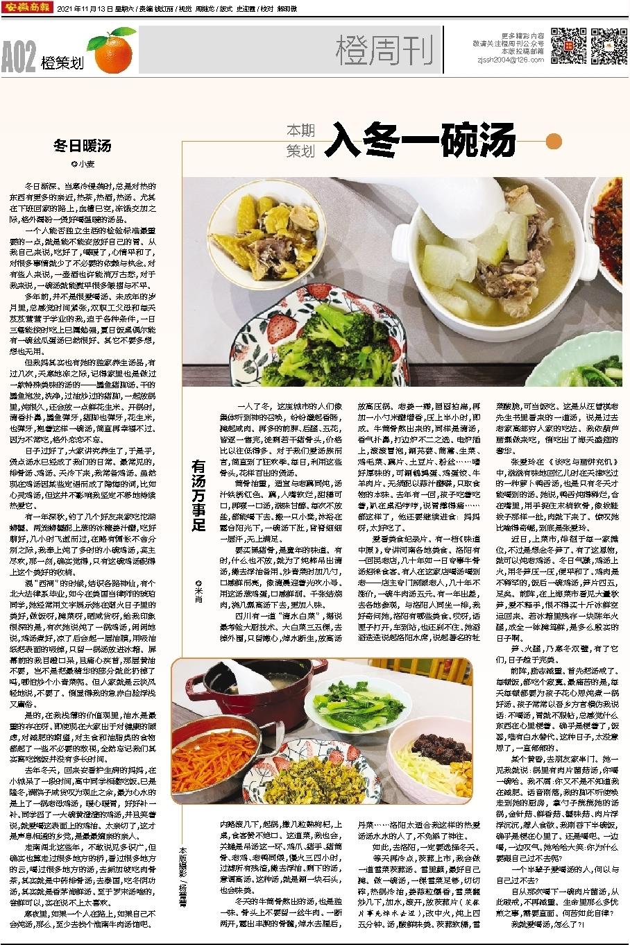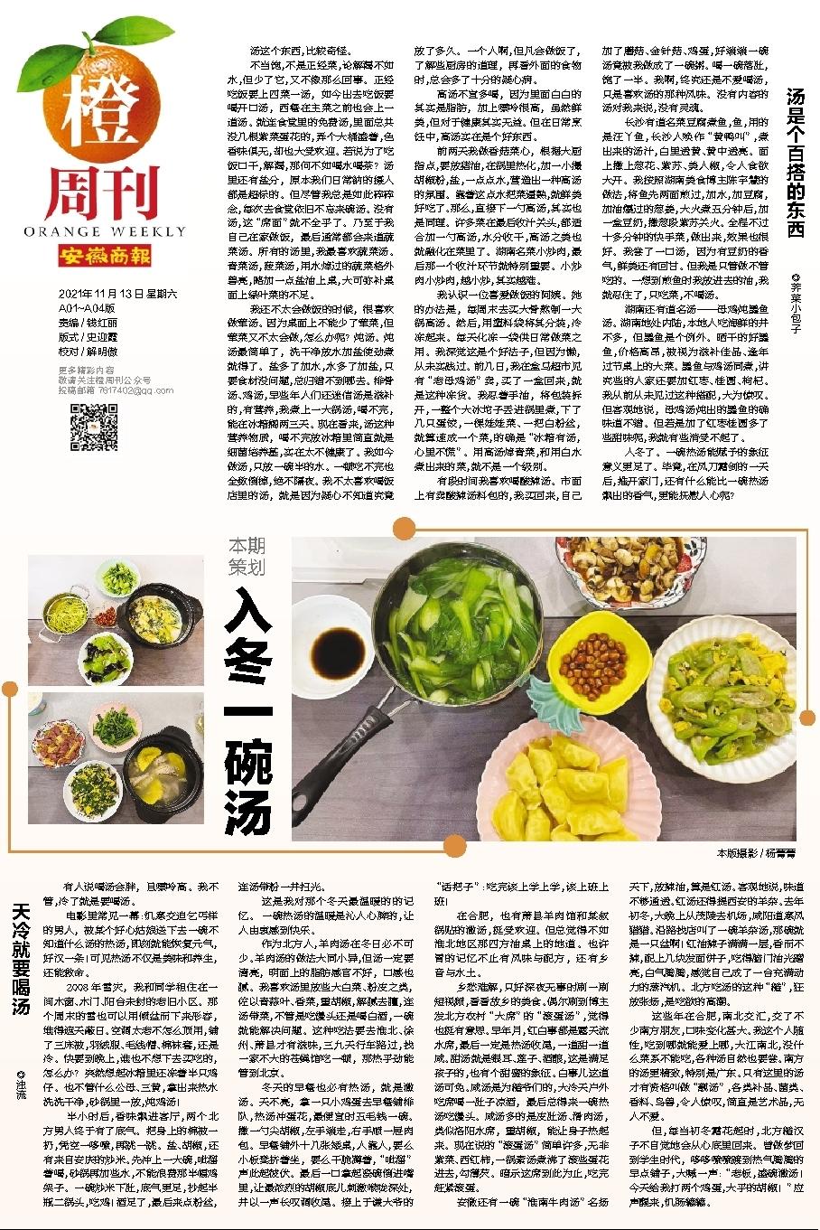 2021年11月13日安徽商报A01-A02版 橙周刊本期策划:入冬一碗汤