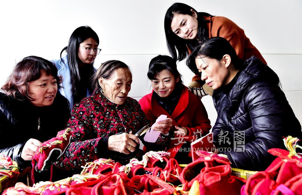 来安县施官镇邀请老人教做虎头鞋。吕华 摄