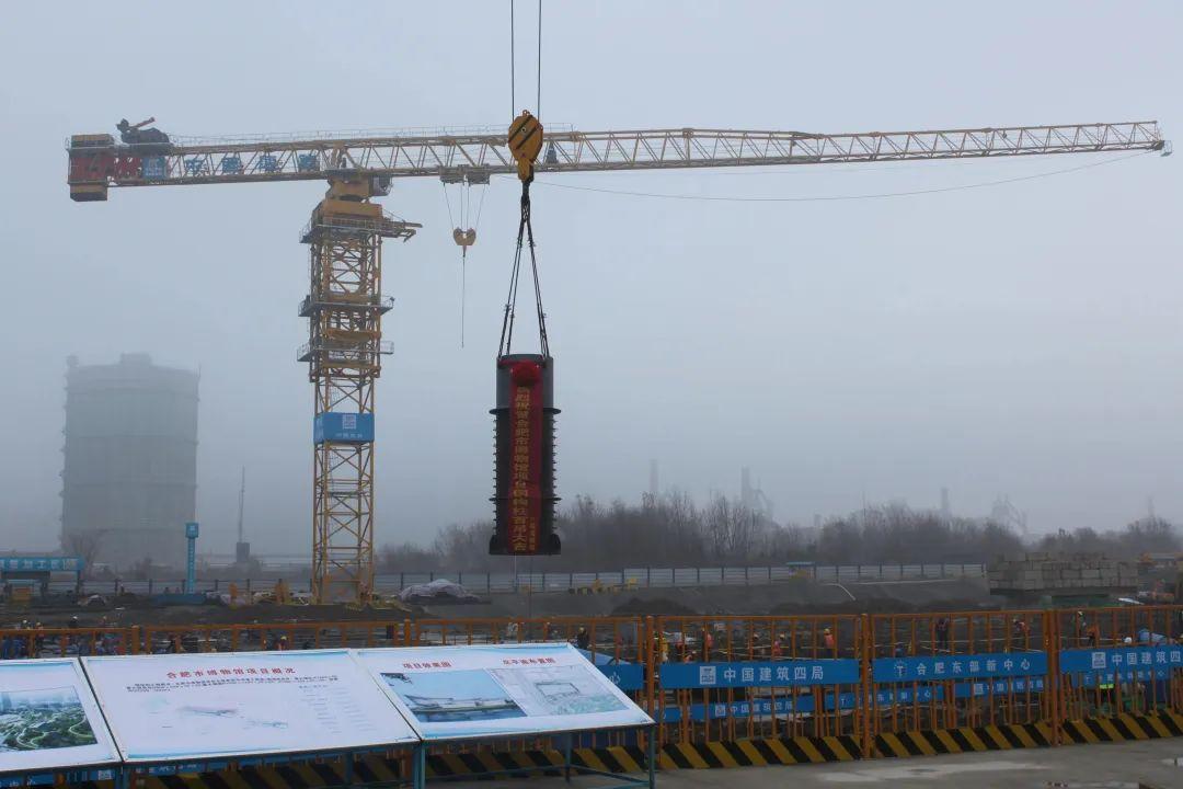 1月4日上午9点16分,随着起吊指令的下达,一根高约5米、重量近11吨的地下室负二节钢柱被缓缓吊起,精准挂钩、慢起吊、轻落位,合肥市博物馆项目钢结构首吊顺利完成,标志着项目全面进入主体钢结构施工阶段。