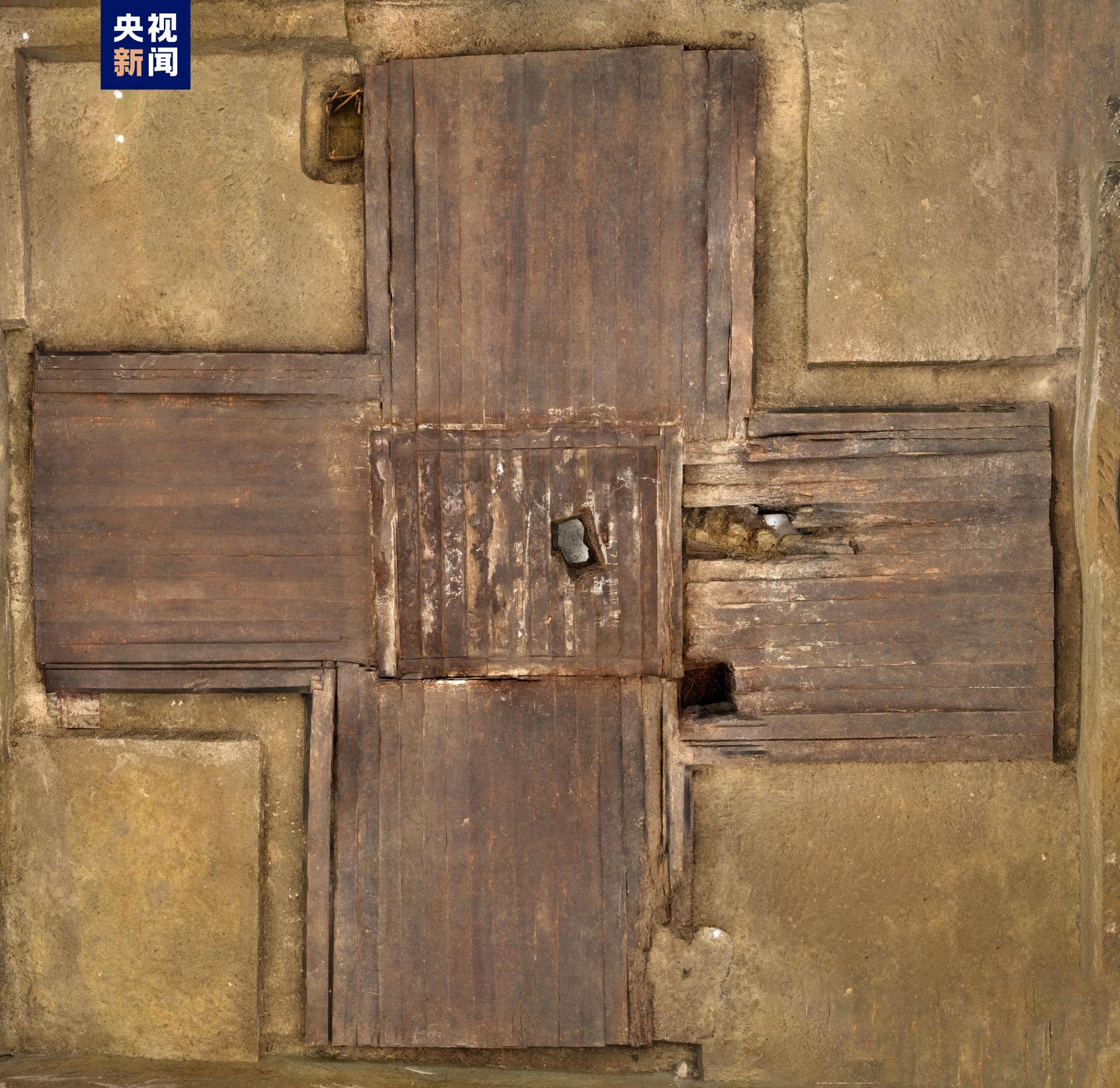 墓坑中央建有“亚”字形椁室,四周分列8个侧室,椁室中部设有棺室,均由长条形枋木构筑,顶部覆盖多层盖板。
