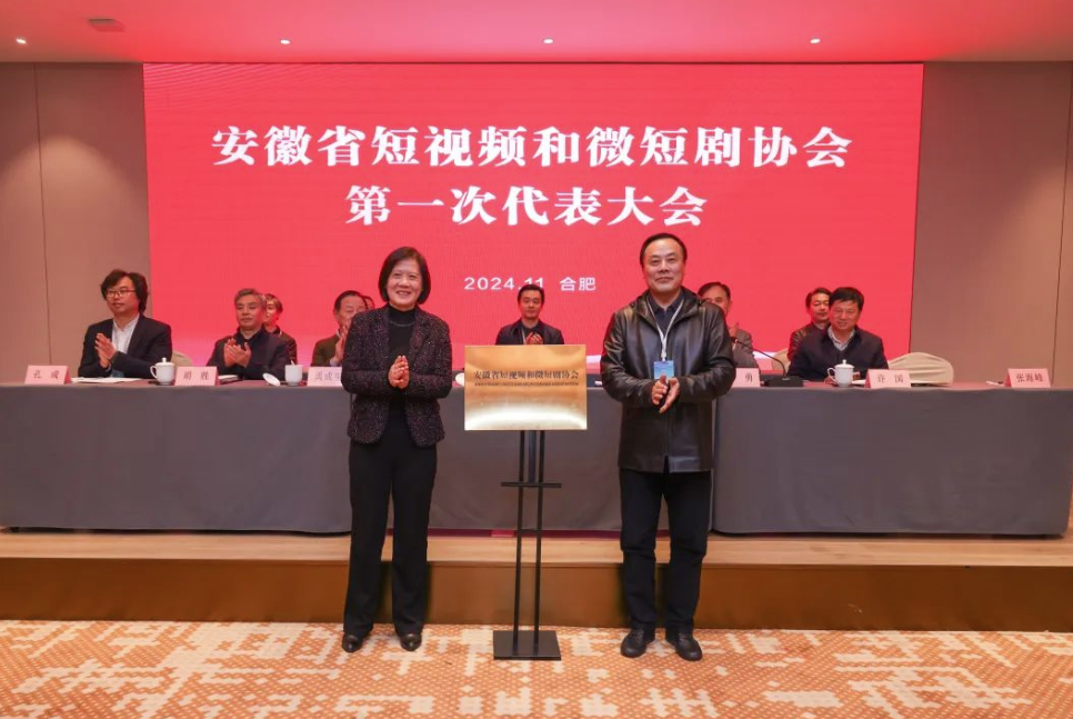 大会听取了筹备工作报告,审议通过了《安徽省短视频和微短剧协会章程(草案)》,表决产生了省短视频和微短剧协会第一届理事会理事以及会长、副会长、秘书长。何颖与新当选的省短视频和微短剧协会会长张海峰共同为协会揭牌,张海峰代表协会第一届领导集体作表态发言。