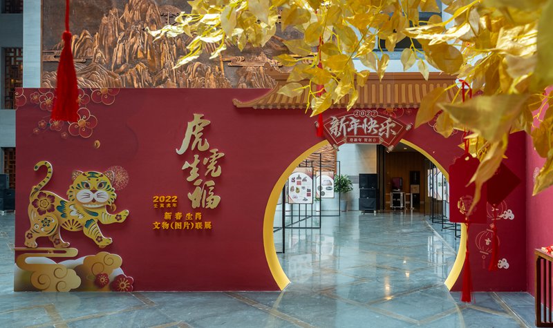 虎跃丰年生紫气。虎的形象在美术作品中十分常见,与虎相关的民俗活动、生活用品比比皆是。