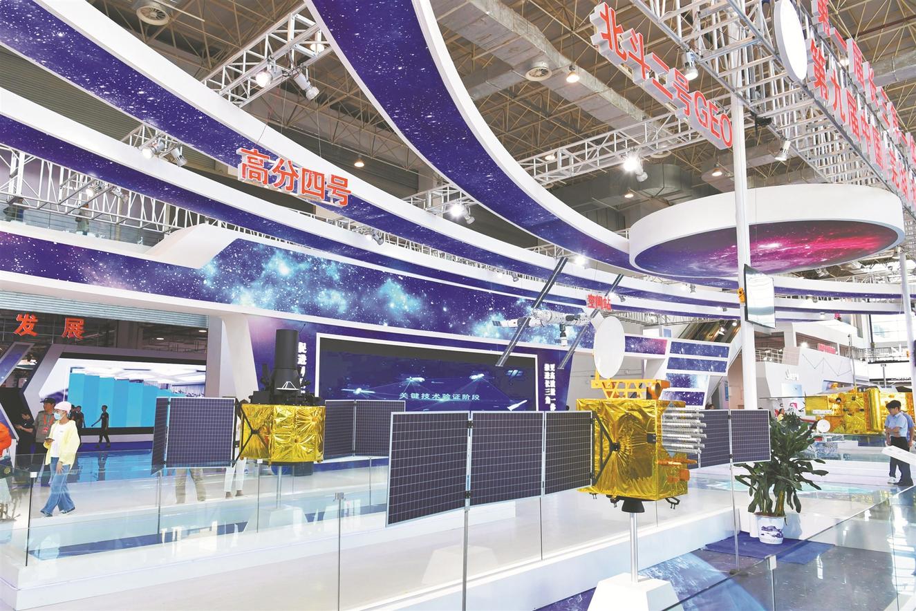 ③ 北斗二号卫星导航系统和高分四号对地观测卫星模型。