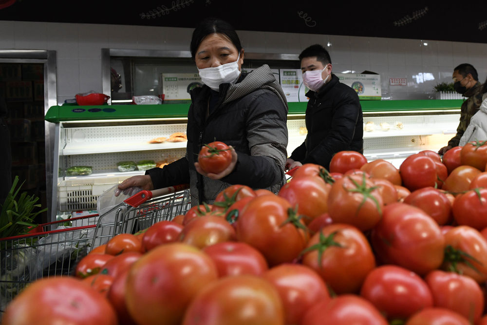 1月28日,市民在合肥市经开区一家超市内采购蔬菜(新华社记者 张端 摄)。