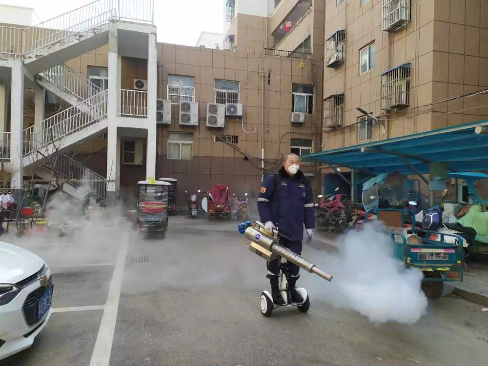 提到酷炫的装备,李博文说,目前全队有4台弥雾机和4台平衡车,都是志愿者自费购买的。弥雾机雾化效果比普通喷淋设备好不少,但使用时队员身上要背着水桶和药桶,总共负重50斤左右,“干一天从早上9点到晚上7点,队员们太累了,就想到了踩着平衡车这个省力气的好办法。”他说,疫情不结束,消毒行动就不会停止。