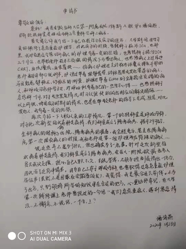 经过深思熟虑,我写下了第二封申请书。护士长说,如果医院安排我们呼吸内科护士去武汉支援,就安排我去。