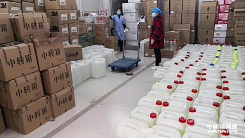 阜阳市台办把阜籍台胞捐赠的1584斤75%医用酒精交付给阜阳市新型冠状病毒肺炎定点收治医院——阜阳市第二人民医院。(来源:阜阳市台办 )