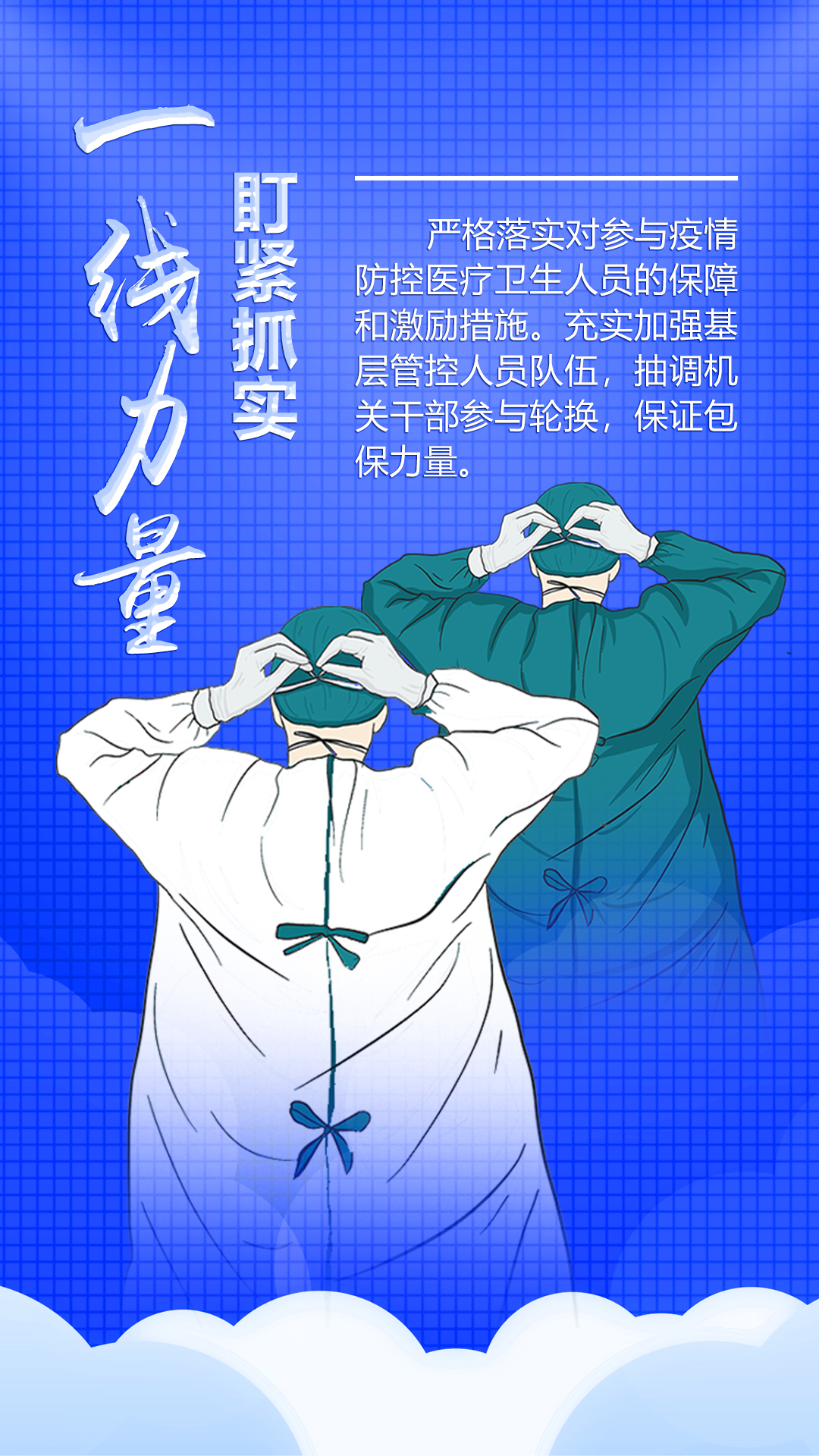 严格落实对参与疫情防控医疗卫生人员的保障和激励措施。充实加强基层管控人员队伍,抽调机关干部参与轮换,保证包保力量。