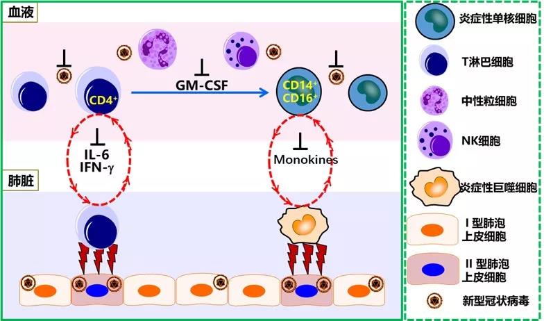 炎症风暴是新冠肺炎患者向重症和危重症发展的重要因素。中科大教授魏海明团队,与中科大附一院副院长、省新冠肺炎医疗救治工作专家组组长徐晓玲团队开展联合攻关。通过对33例重症新冠肺炎病人血液30项免疫学指标的全面分析,发现了新型冠状病毒感染致重症肺炎炎症风暴的可能的关键机制:新型冠状病毒感染后,迅速激活炎症性T细胞和炎症性单核巨噬细胞,通过粒细胞-巨噬细胞集落刺激因子(GM-CSF)和白介素6(IL-6)通路,形成炎症风暴,导致严重肺部免疫损伤。