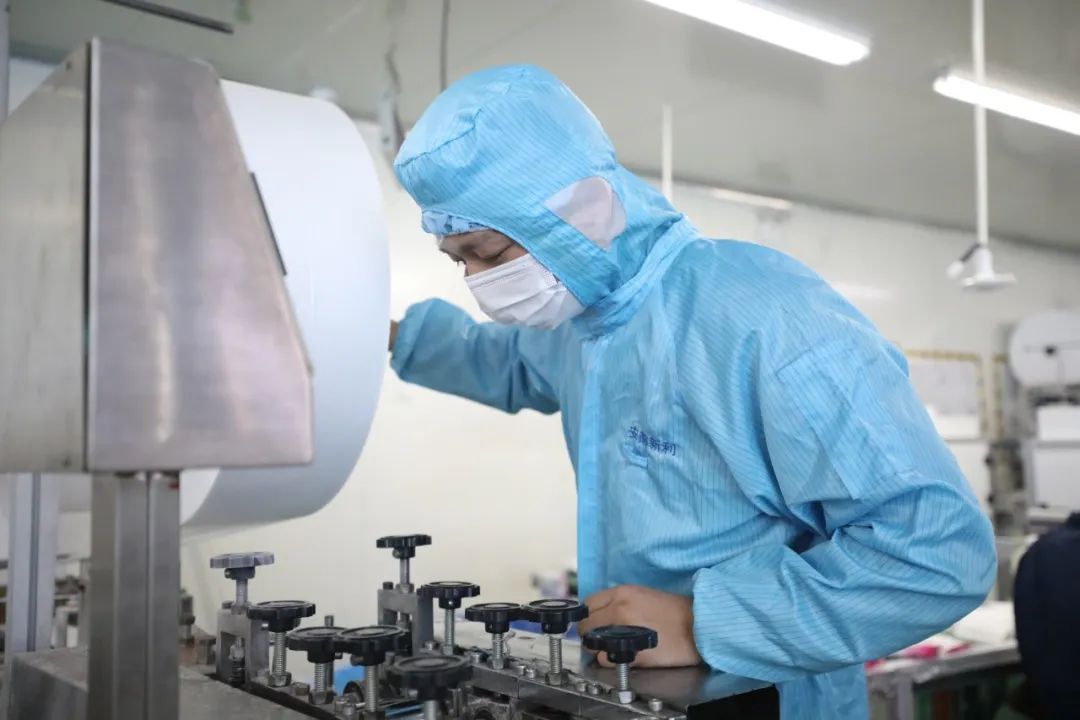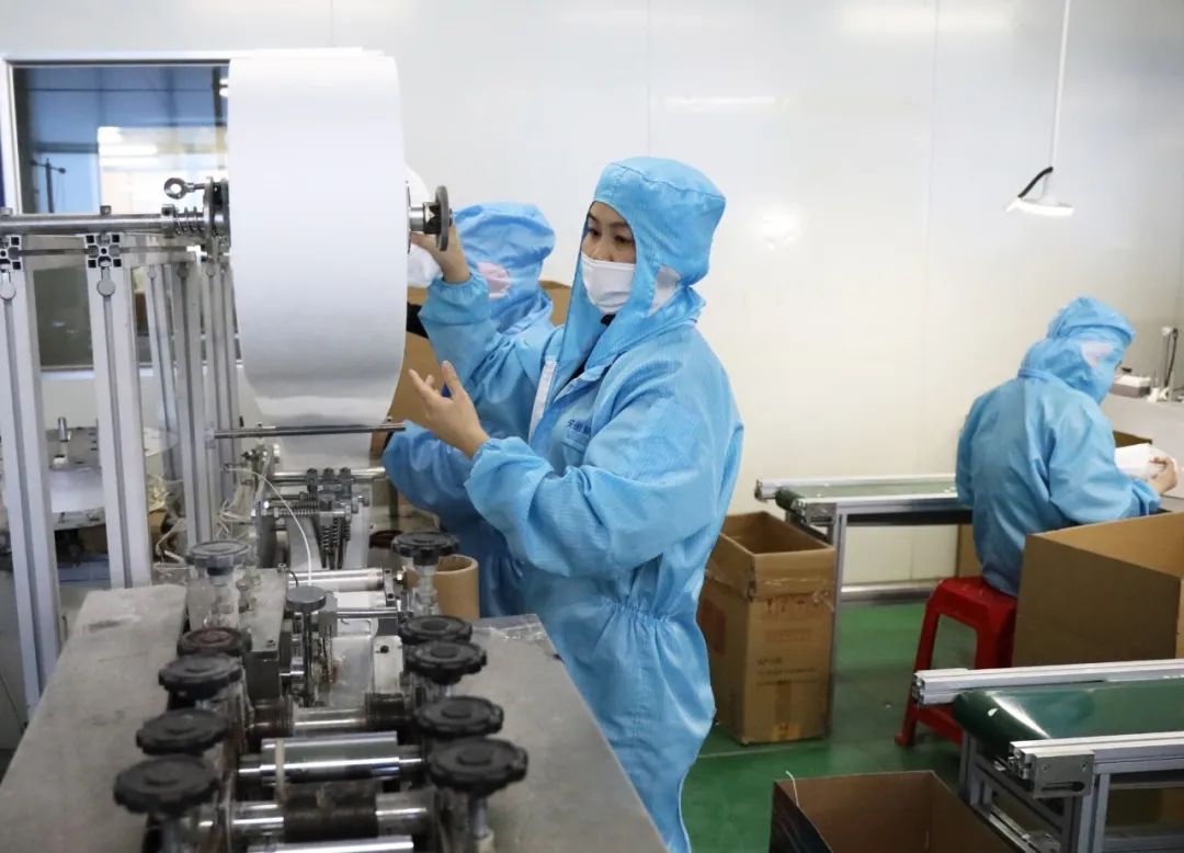 公司总经理蔡旭东说:“自复工以来,公司一方面对旧设备进行翻新,改进生产工艺,实现自动化生产;一方面加班加点生产,夜里12点收工是常态,克服重重困难,终于将日产量由原先的30万只扩大到100万只。”