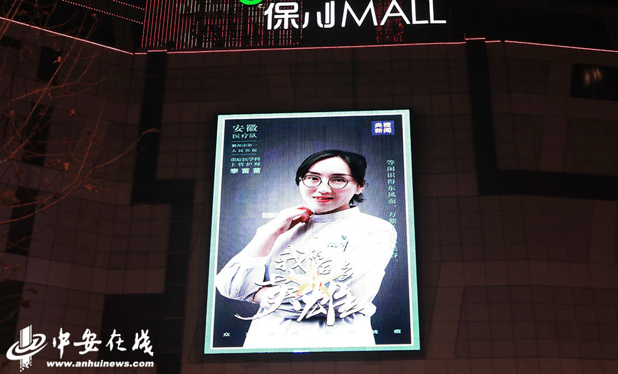 3月7日晚开始,合肥市15家商业综合体集中为安徽省支援湖北抗疫的女医护人员亮屏,向可敬可爱的抗疫英雄致敬