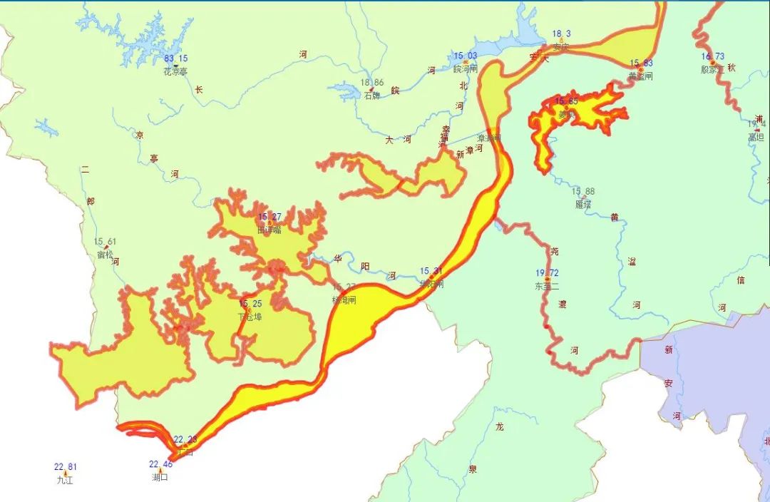 7月6日8时至7月12日2时,长江汇口水位站水位自19.59米陡涨至22.16米,日涨幅0.47-0.51米,高水位期间长江水位日涨幅值达到该县汇口水位站有历史记载以来的极值!