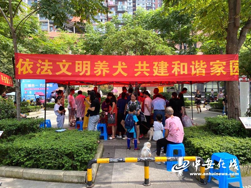 合肥市养犬管理条例》自6月1日实施以来,已经有两个月时间,不少合肥市民已经给自己的爱犬登记犬证,但仍有不少养犬市民在为如何给犬只上证而头疼。7月31日上午,庐阳公安联合城管和农林水务局在中铁广园小区内举办免费为犬只注射疫苗并帮助登记办理犬证的活动,吸引了大量群众围观,警方也在活动上宣传文明养犬。