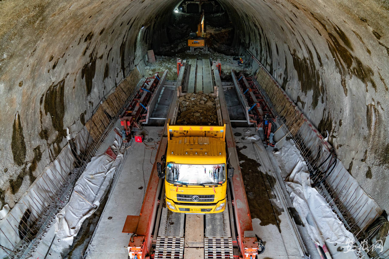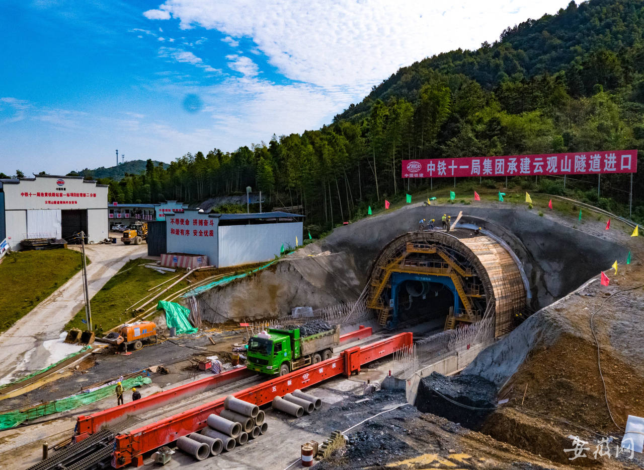 在池黄高铁云观山隧道作业点,大型器械作业的轰鸣声不断传来,一辆辆装载石头的卡车从隧道内运出来。据工程负责人介绍,这里每天通过大型挖掘设备和人工相互配合作业,可以向推进1.2米左右,目前已掘进120米,预计2022年3月可以全面完工。