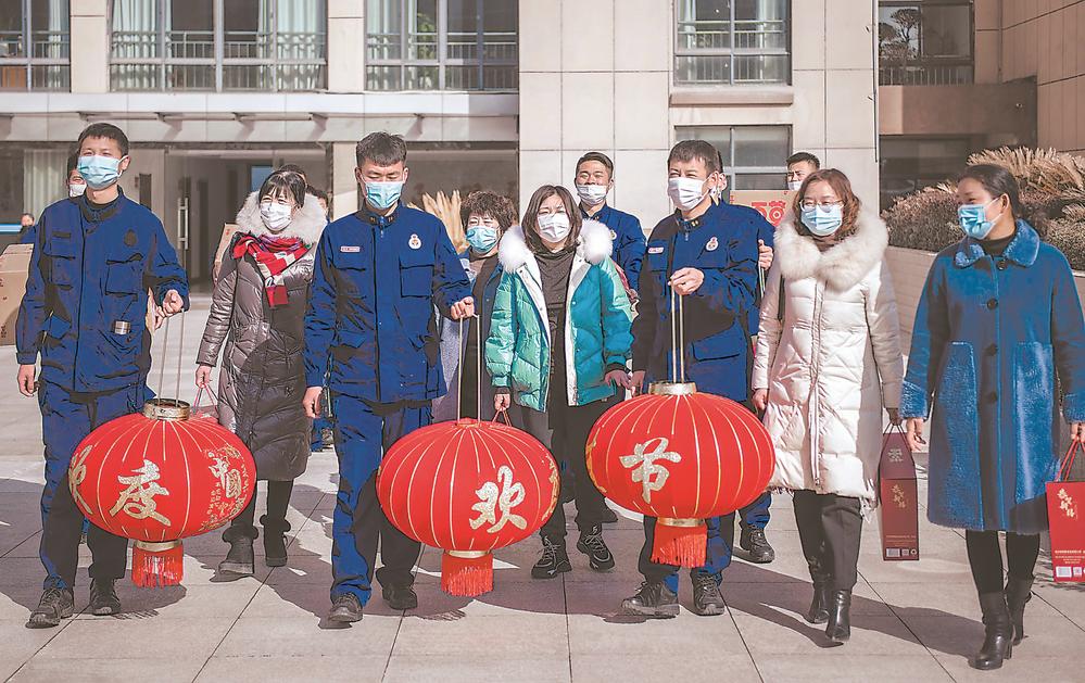 ① 1月29日,滁州市来安县新安镇组织各社区工作人员看望慰问就地过年的消防官兵,为他们送上灯笼、春联和礼包等。 本报通讯员 吕华 本报记者 周连山 摄