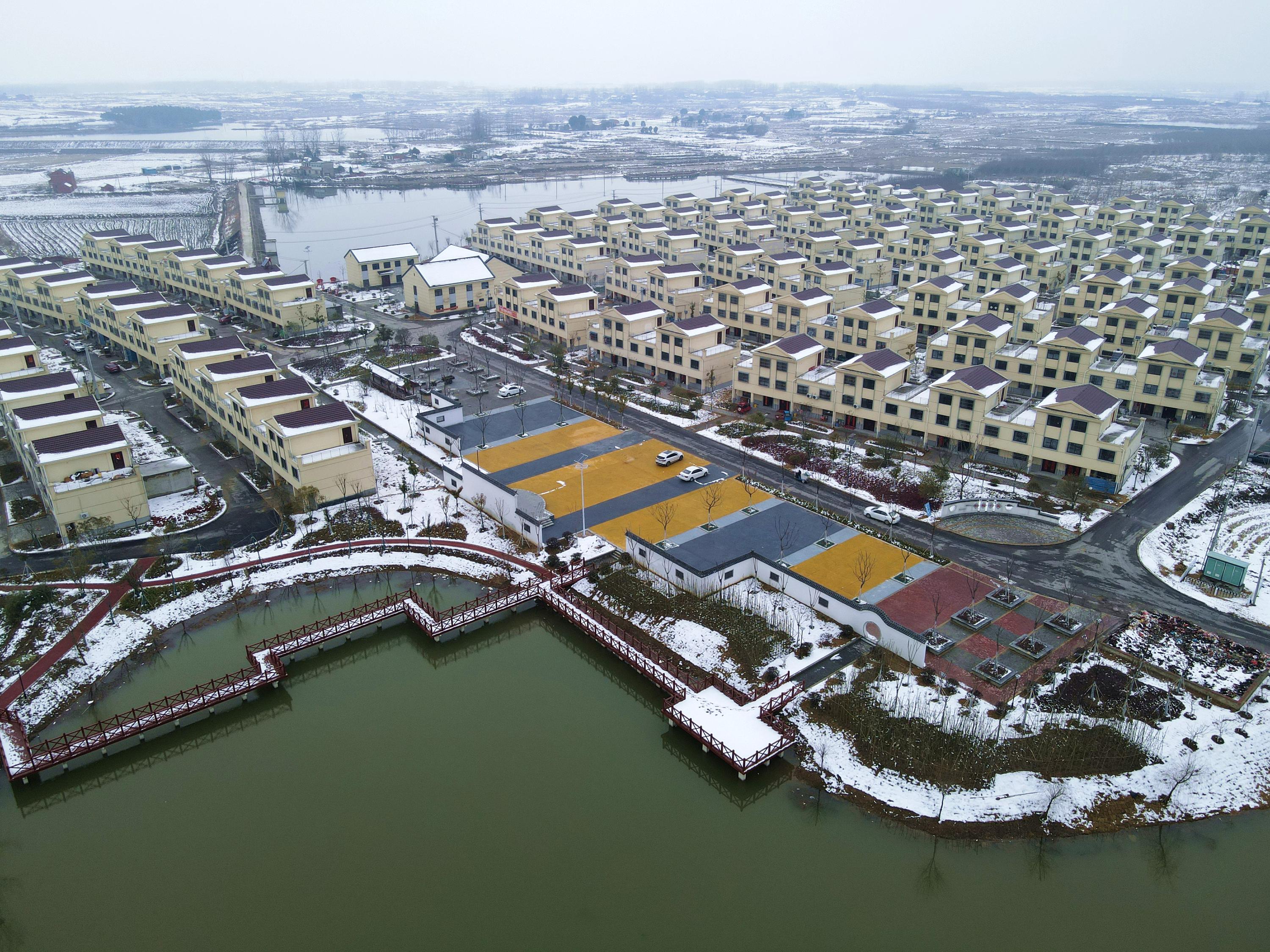 2月8日,航拍雪后的肥东县古城镇松王社区杨桂小区。通讯员 方好 摄