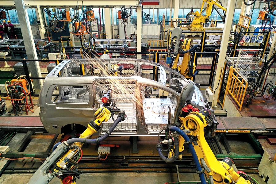 8月4日,位于蒙城经济开发区的江淮安驰汽车公司焊装车间自动化区域,机器人正在进行智能化焊接作业。该车间2021年获评 “安徽省智能工厂及数字化车间”。通讯员 胡卫国 摄