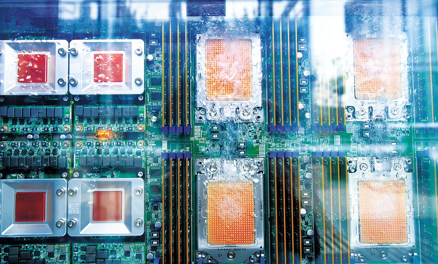 “浸没式液冷”散热技术,精准地控制核心元器件的工作温度,从而更好地发挥峰值性能。记者 程兆 摄