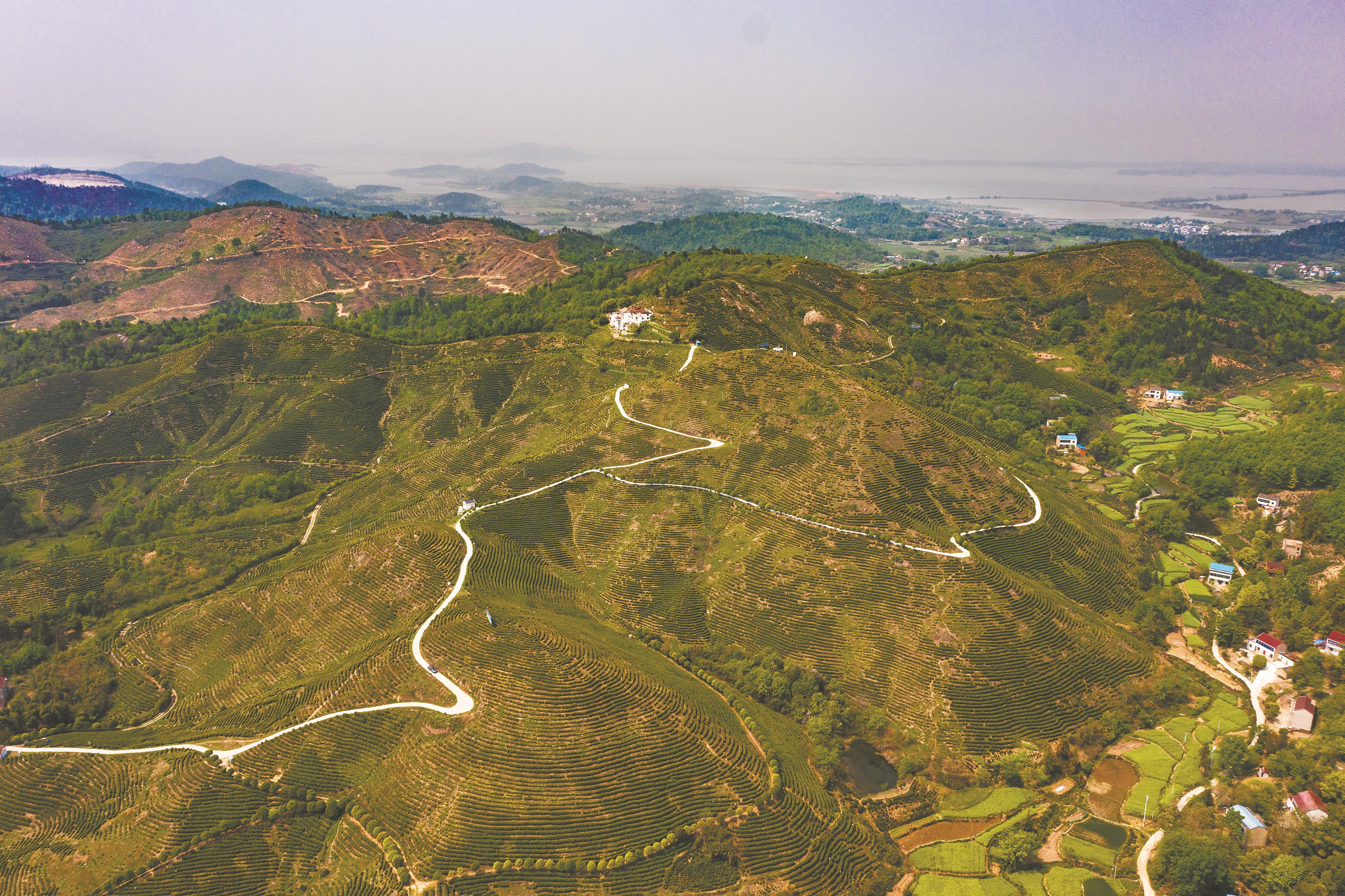 航拍枞阳县官埠桥镇仙羽舌白茶种植基地。近年来,枞阳县共种植白茶、黄金茶等品种5万亩,年产成品茶近90万斤,茶叶产业已成为群众增收致富的主导产业。 本报通讯员 王章志 汪华君 摄