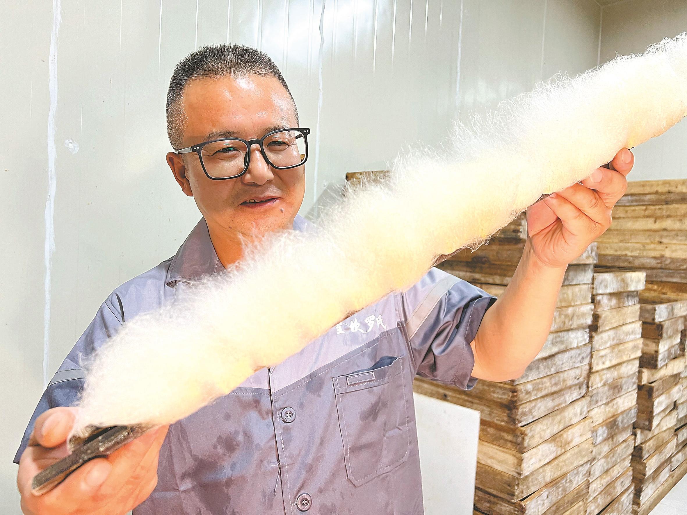7月5日,蒋光明在察看毛豆腐毛色是否纯正。