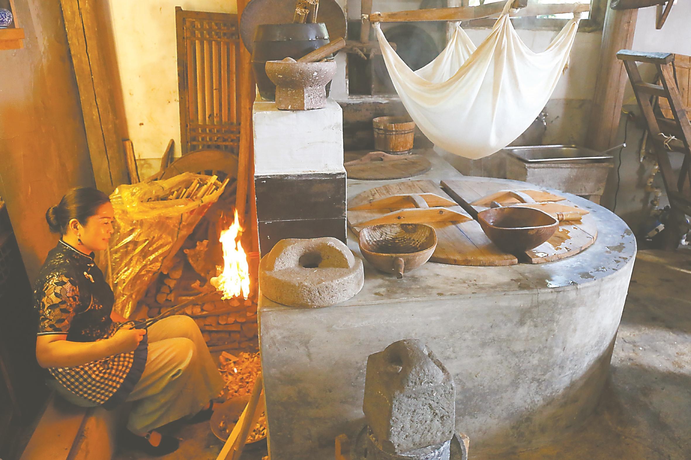 6月28日,罗志敏在呈坎老屋内点火烧浆。