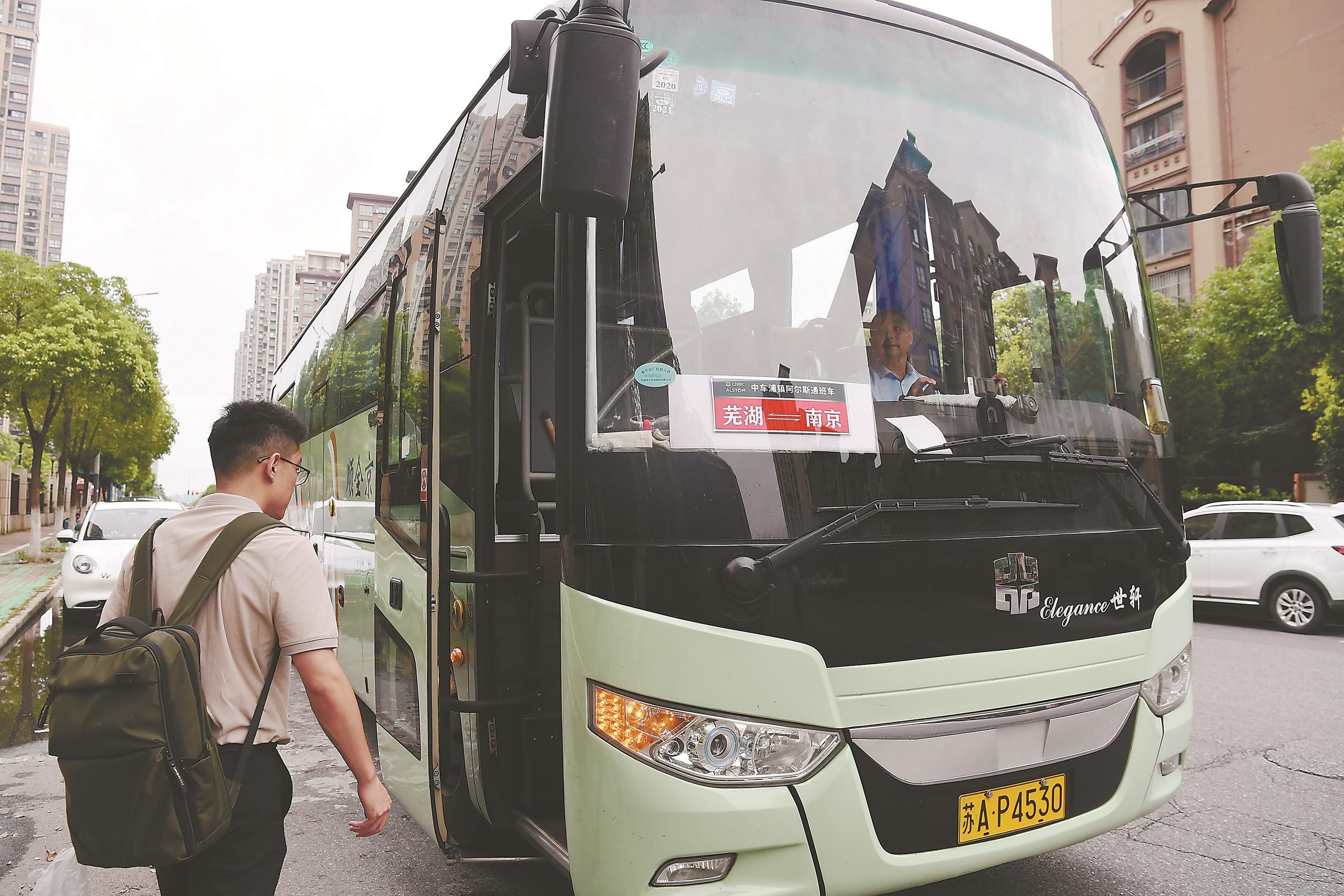 王振今年36岁,他告诉记者:“家在南京、来芜湖发展,有不少同事和我一样选择这样的‘双城生活’,公司专门开通一趟班车往返宁芜之间,这趟跨省班车每天要行驶280公里。”