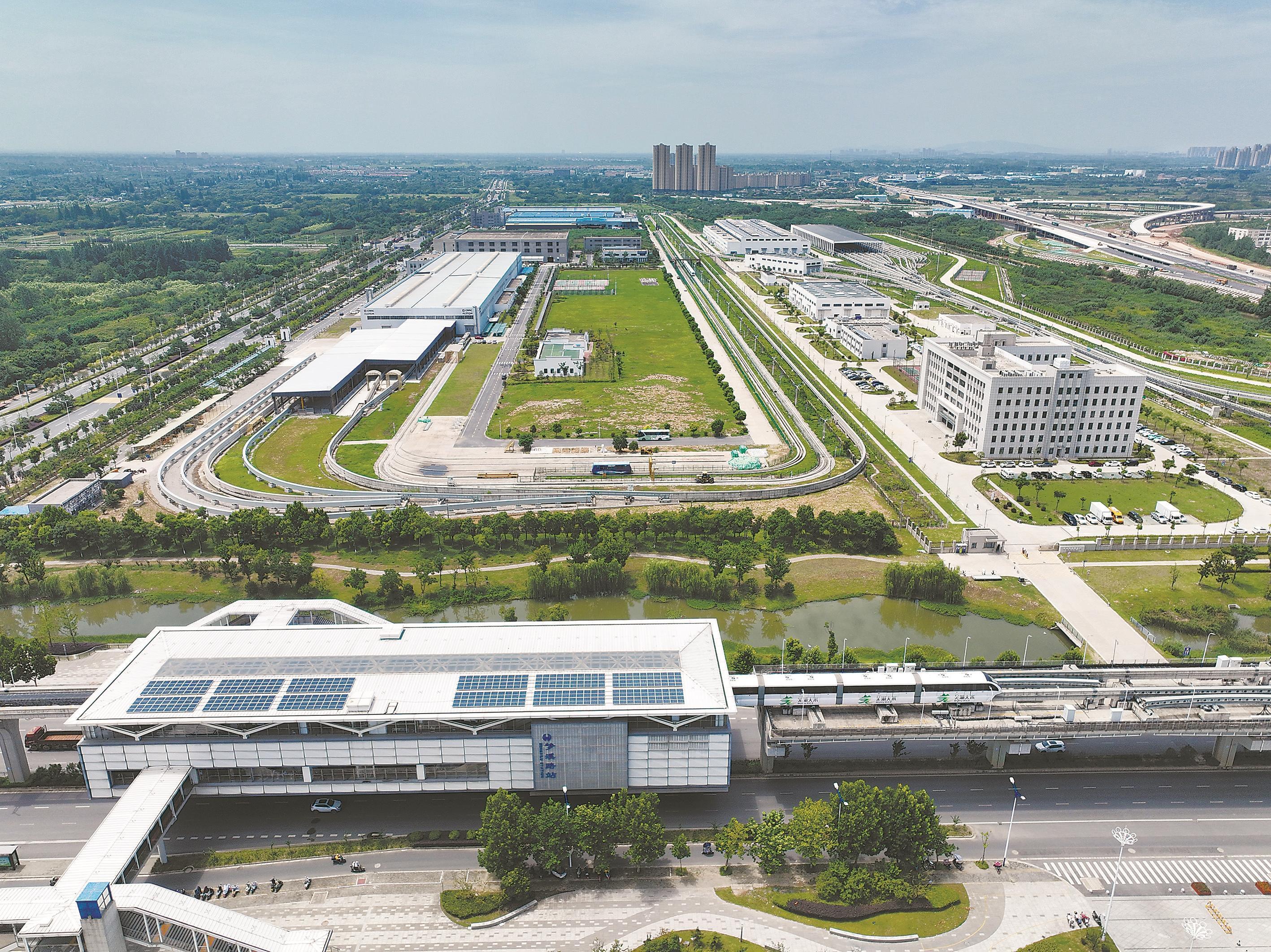 7月11日,一辆轻轨驶出芜湖城轨梦溪路站,不远处就是生产城轨车辆的中车浦镇阿尔斯通运输系统有限公司。