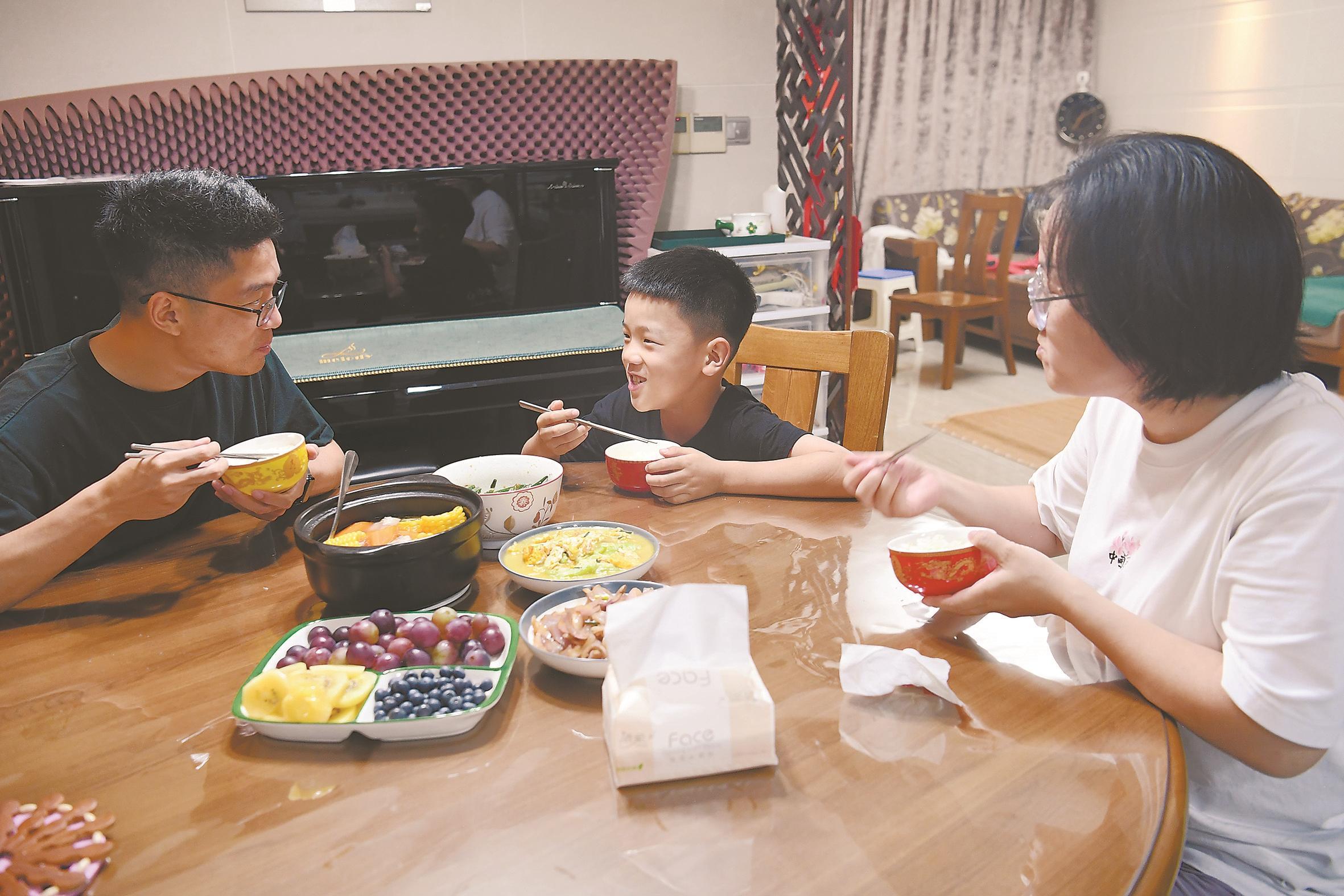 7月10日傍晚,王振(左一)在南京和家人一起吃晚饭。