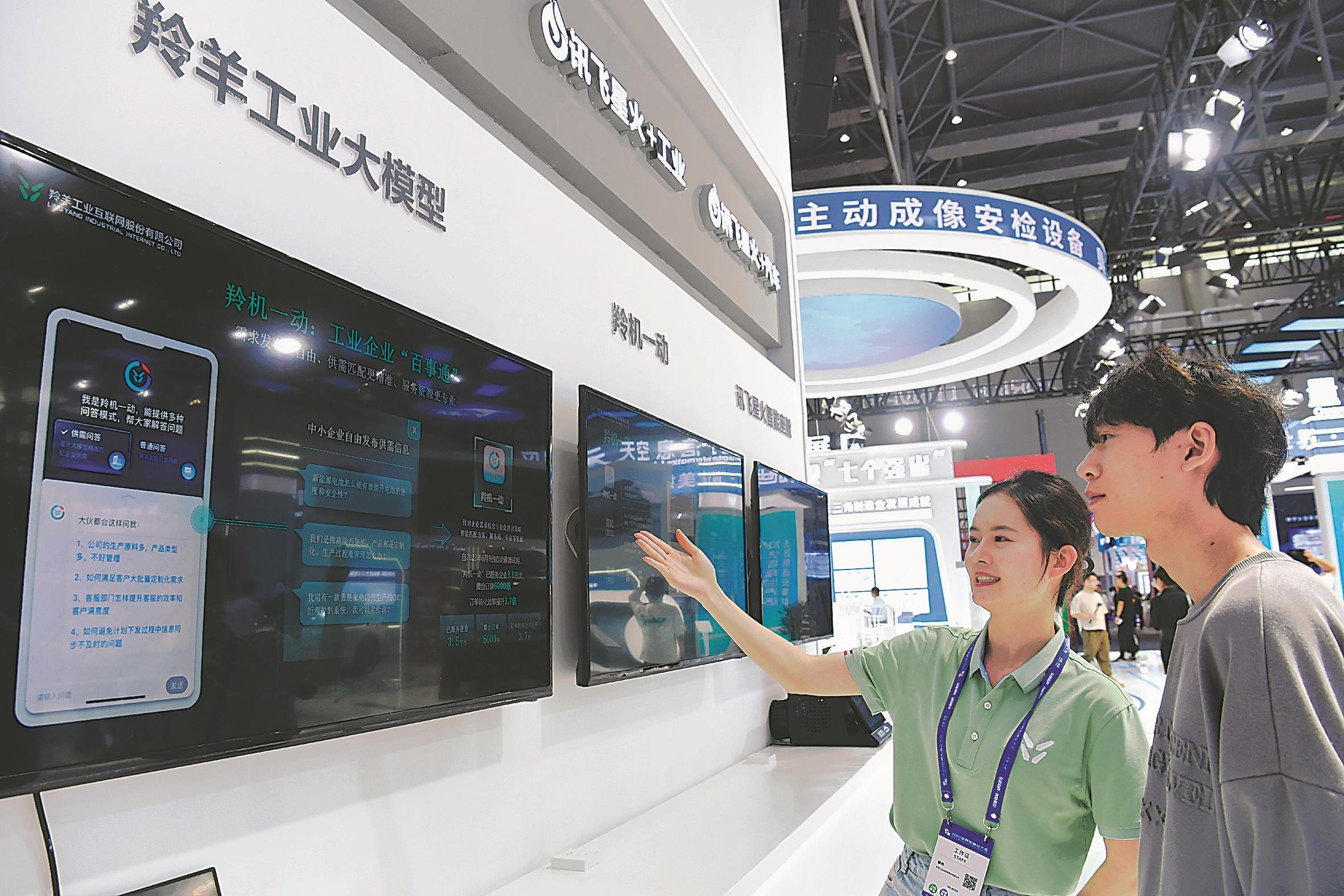 9月20日,在2023世界制造业大会展台,市民了解羚羊工业大模型。 本报记者 徐旻昊 摄