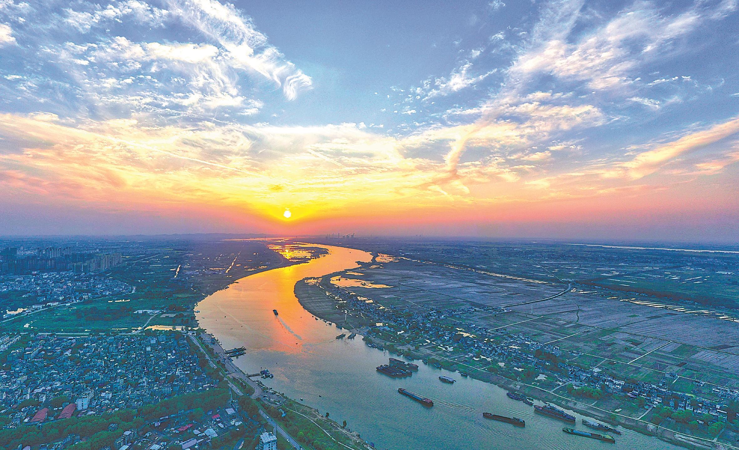 淮河干流淮南段,一艘艘装满货物的船舶在航道上往来穿梭。