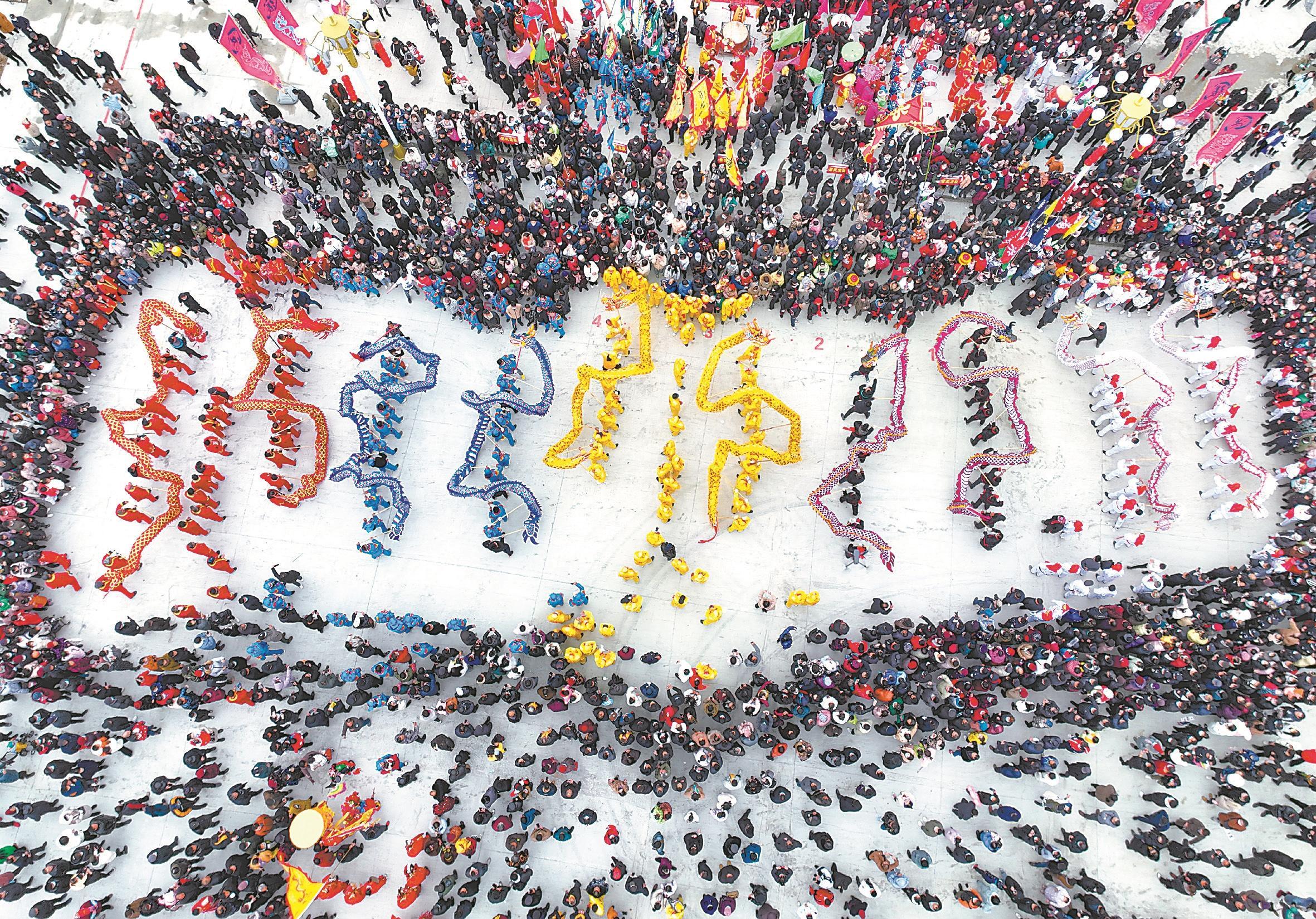 寿县保义舞龙灯。