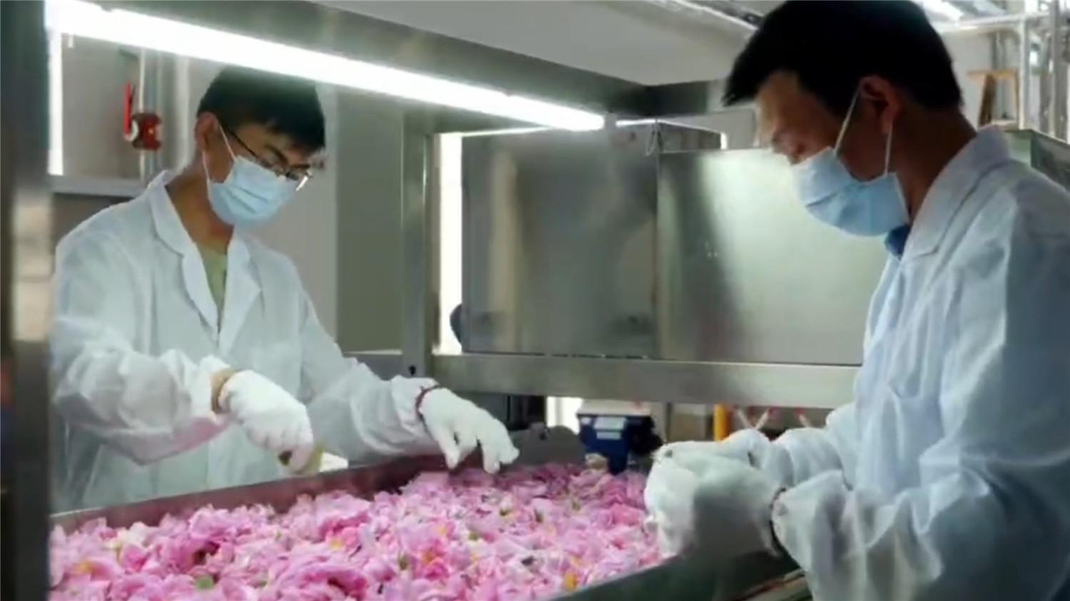 11月30日下午,在宣州区杨柳镇兴洋村的焦甜香产业融合科技园生产车间内,全自动化精油、纯露生产线正有序运转,能闻到玫瑰纯露的淡淡香气,沁人心脾。