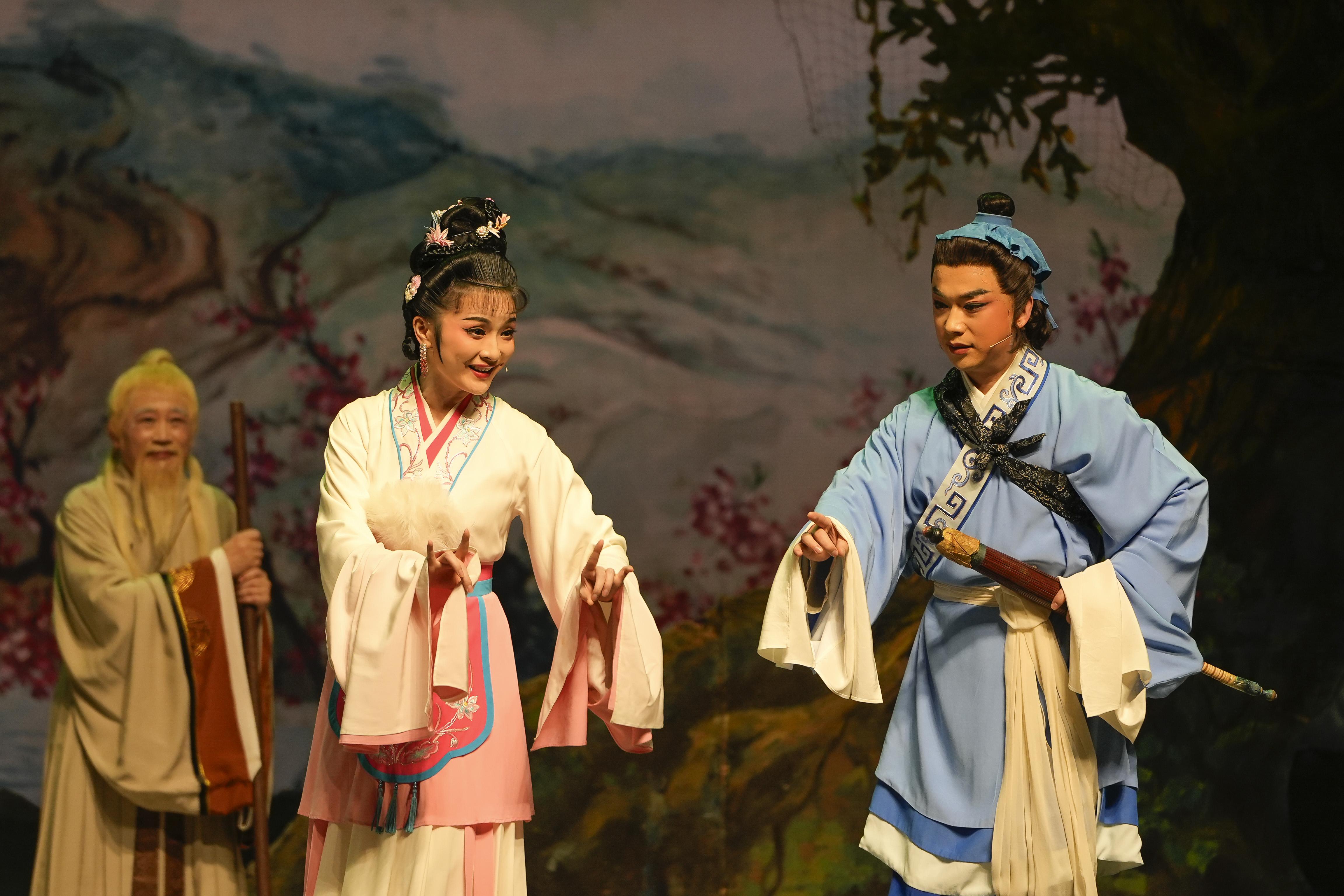 黄梅戏《天仙配》曾获全国优秀保留剧目大奖,入选“庆祝中国共产党成立100周年舞台艺术精品创作工程”重点扶持作品。“树上的鸟儿成双对,绿水青山带笑颜……”悠扬动听的曲调响起,带领观众回味脍炙人口的故事:七仙女不顾天规私自下凡,槐荫树下“邂逅”董永结为伉俪,一夜之间织成十匹锦绢,助董永三年长工改为百日,满工路上二人憧憬美好生活,不料玉帝降旨令七仙女返回天宫,生生拆散了恩爱夫妻。