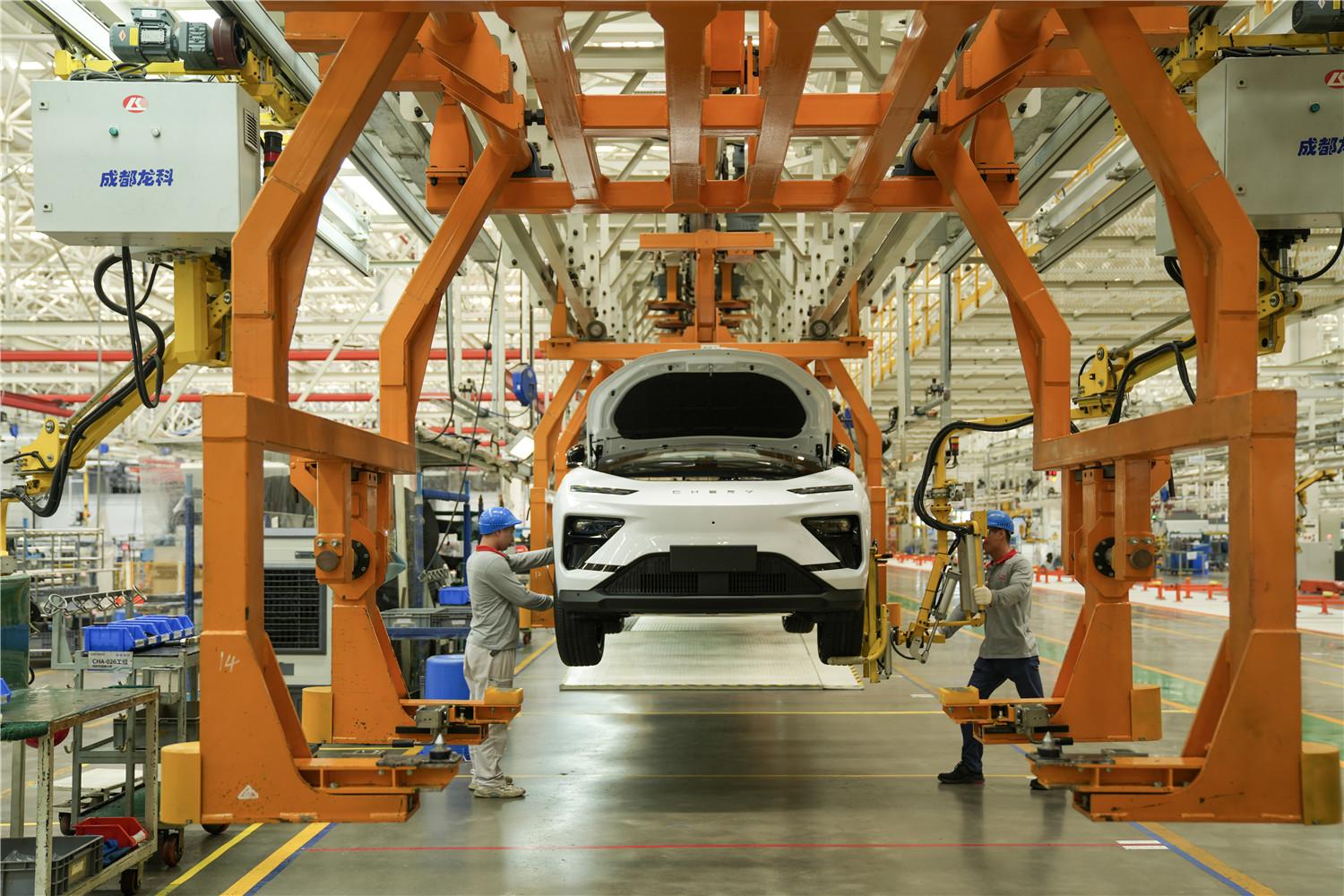 芜湖奇瑞新能源二期工厂生产线 。(资料图片)本报记者 李 博 摄
