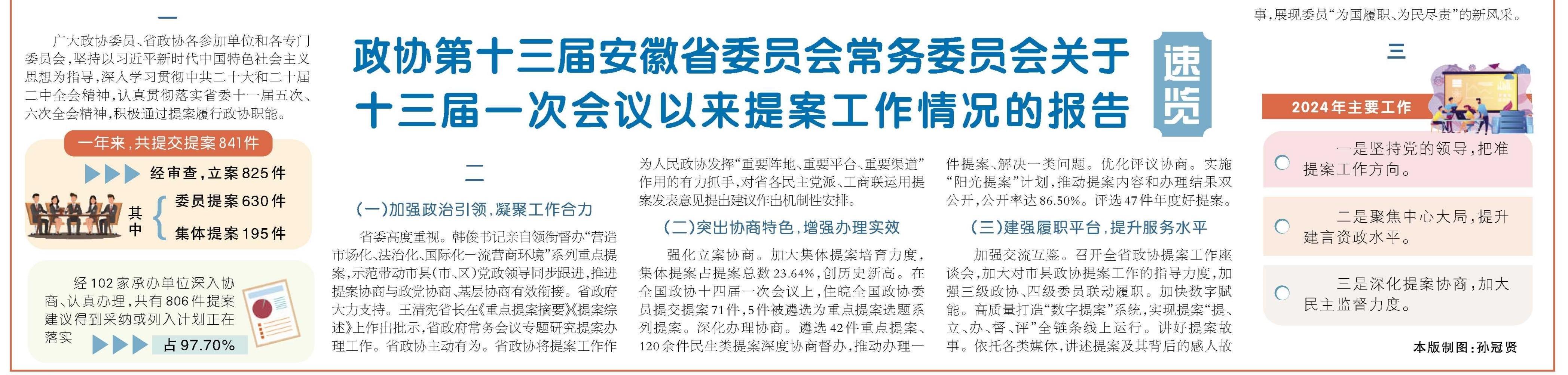 政协第十三届安徽省委员会常务委员会关于十三届一次会议以来提案工作情况的报告速览