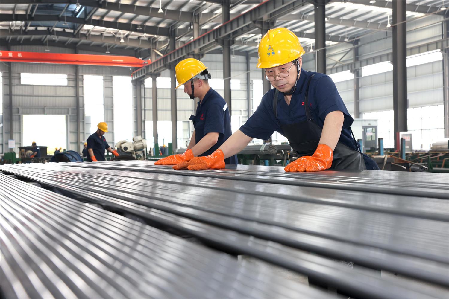 4月26日,在铜陵义安经济开发区内的安徽安派新材料有限公司生产车间,工人们正在生产高压无缝钢管产品。本报通讯员 梅建广 摄