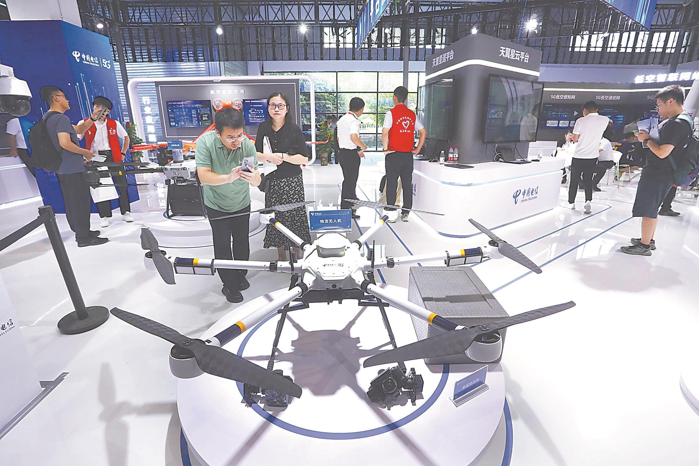 9月6日,芜湖市弋江区芜湖宜居国际博览中心内,在“2024低空经济发展大会”新质生产力创新成果展上,观众参观展览。本报通讯员 王玉实 摄