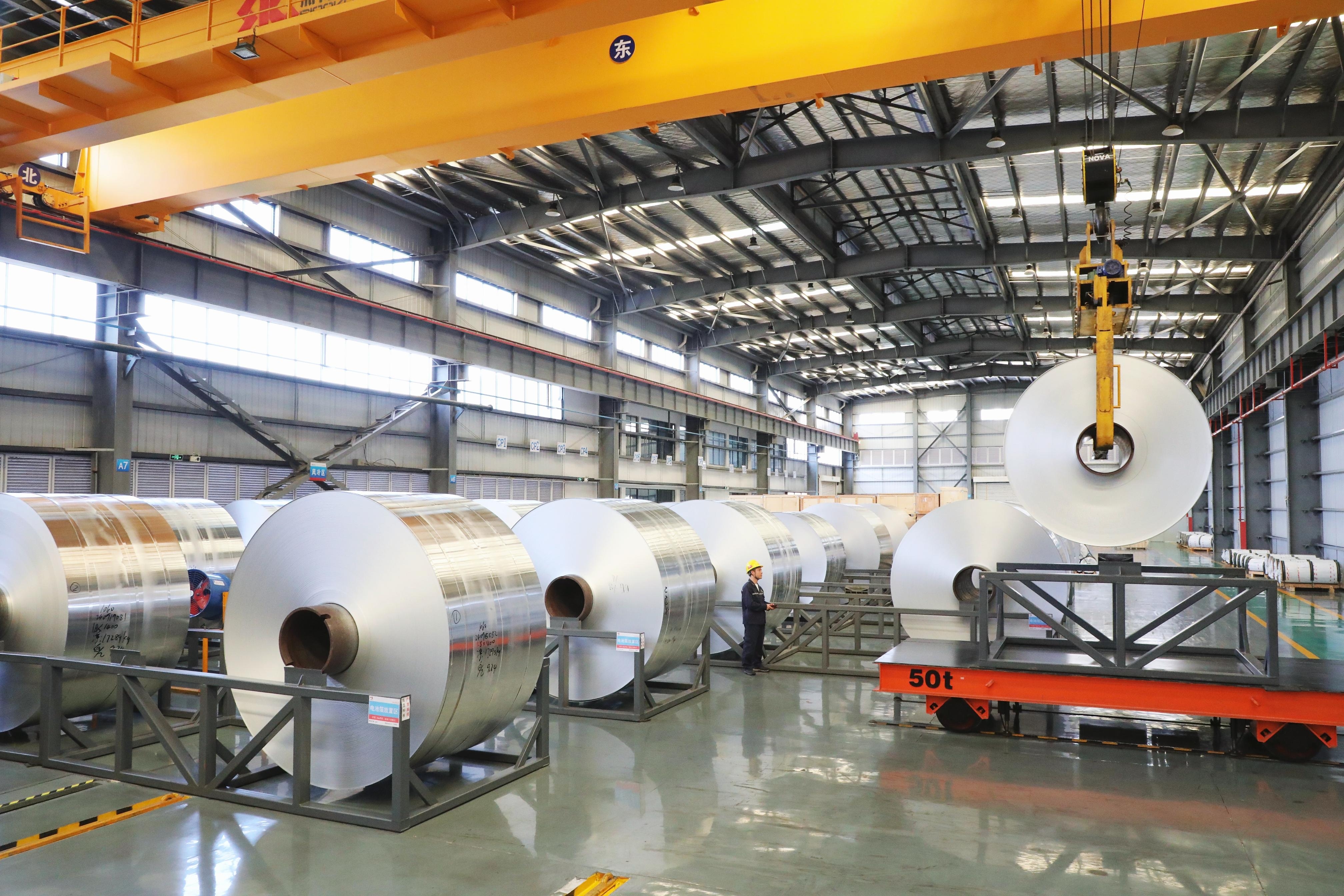 9月24日,铜陵市枞阳县金誉材料股份有限公司,工人正在调运铝卷,进行退火工艺处理。本报记者 李 季 摄