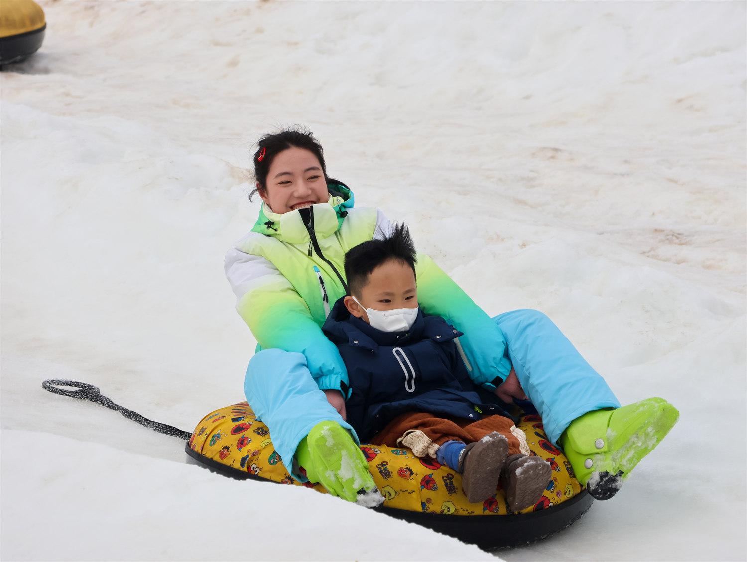 2月2日,亳州市谯城区百草园滑雪场,市民在体验滑雪乐趣,乐享春节假期。本报通讯员 陈五志 摄