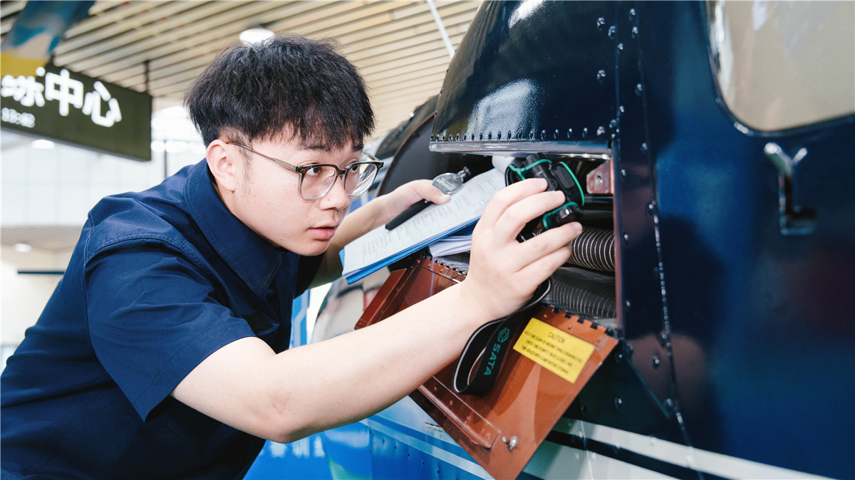 “00后”的唐凡大学就读于西安航空学院,在将近毕业时,他参加了校企“3+1”合作培养项目,2021年顺利进入国营芜湖机械厂成为一名飞机维修师,从事飞机装配与调试工作,现已将近4年。