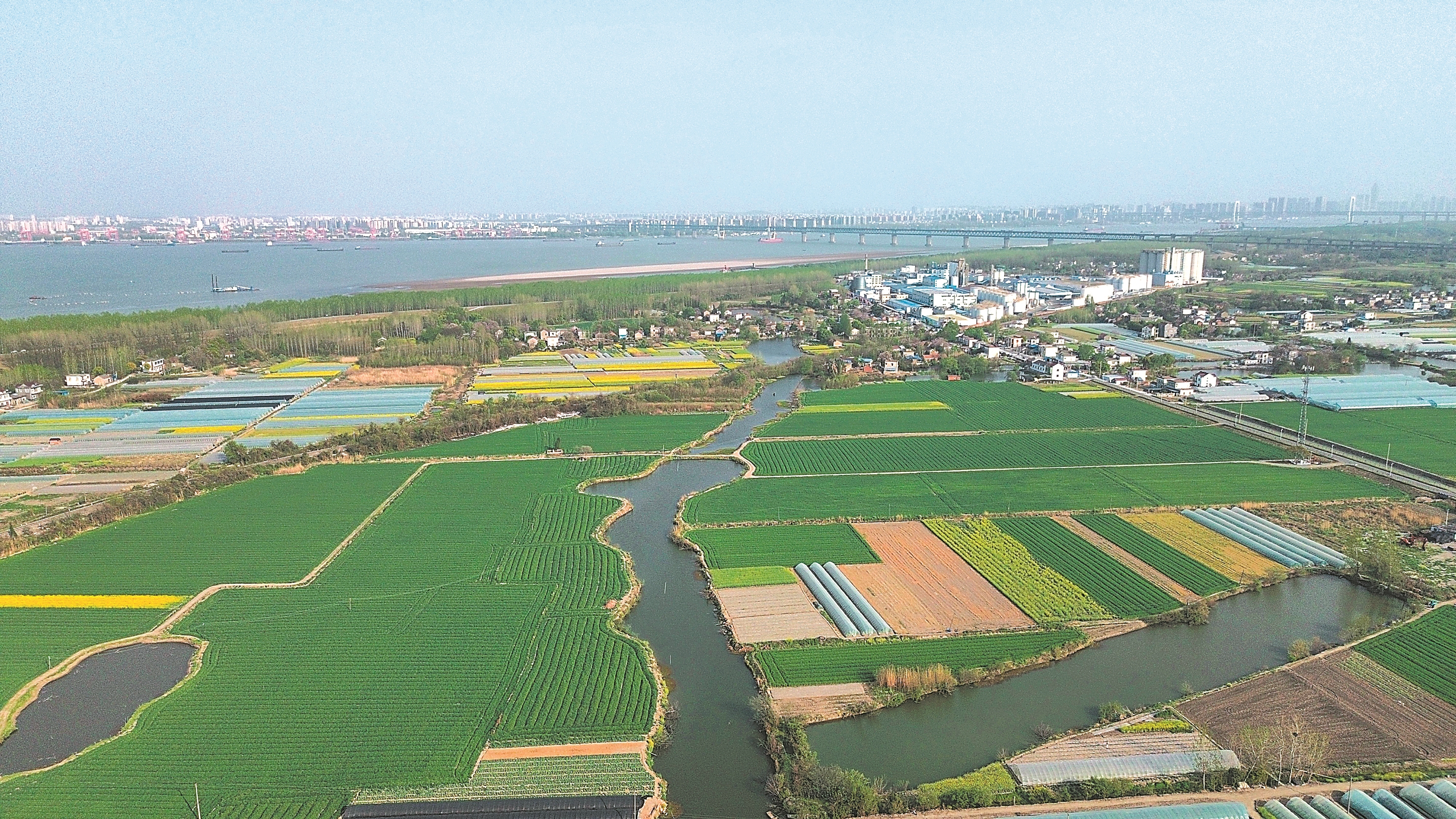 鸠江区汤沟镇红旗村是个江边村落。在离长江岸线数百米远的埂堤上,一栋栋民居沿着江水的方向一字排开。民居的背后,整齐划一的高标准农田里,是一望无际的连片果蔬大棚。