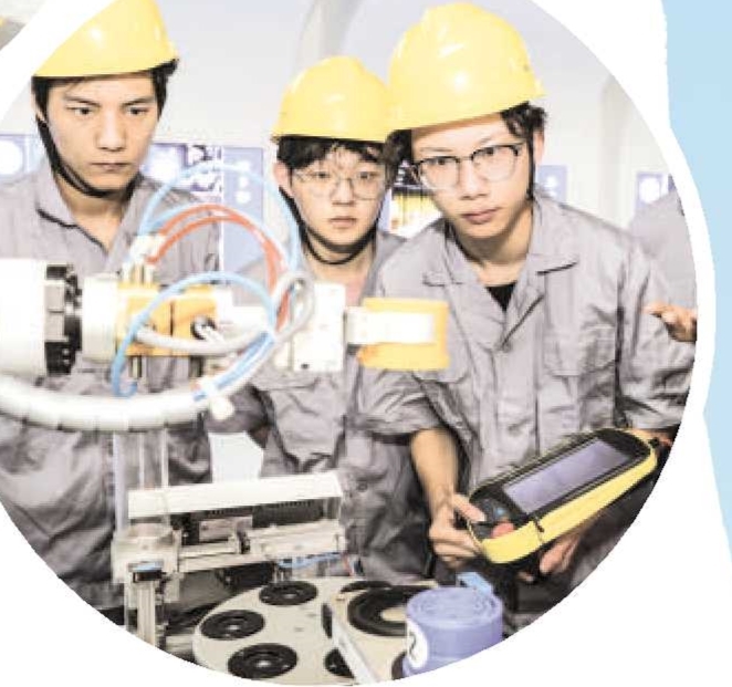 铜陵坚持产教融合,为长三角地区输送优质人才。图为铜陵职业技术学院教师向学生教授智能制造方面知识。 高凌君 摄
